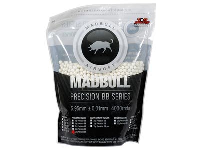 --> Details : Mad Bull Precision Grade 6mm plastic airsoft BBs, 0.20g, 4000 rds, white