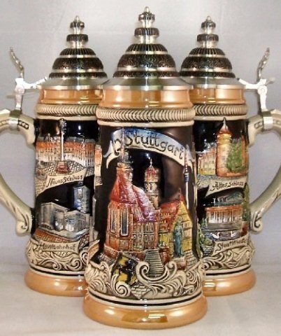 - This collectors beer stein features handpainted raised reliefs from Stuttgart, Germany including Neu